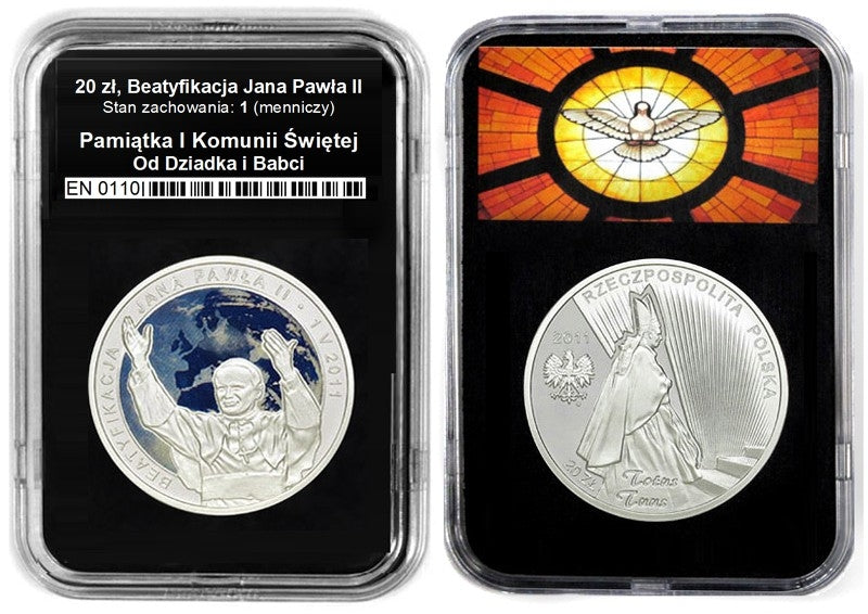 20 zł Beatyfikacja JPII Pamiątka I Komunii Św.+Twoja dedykacja