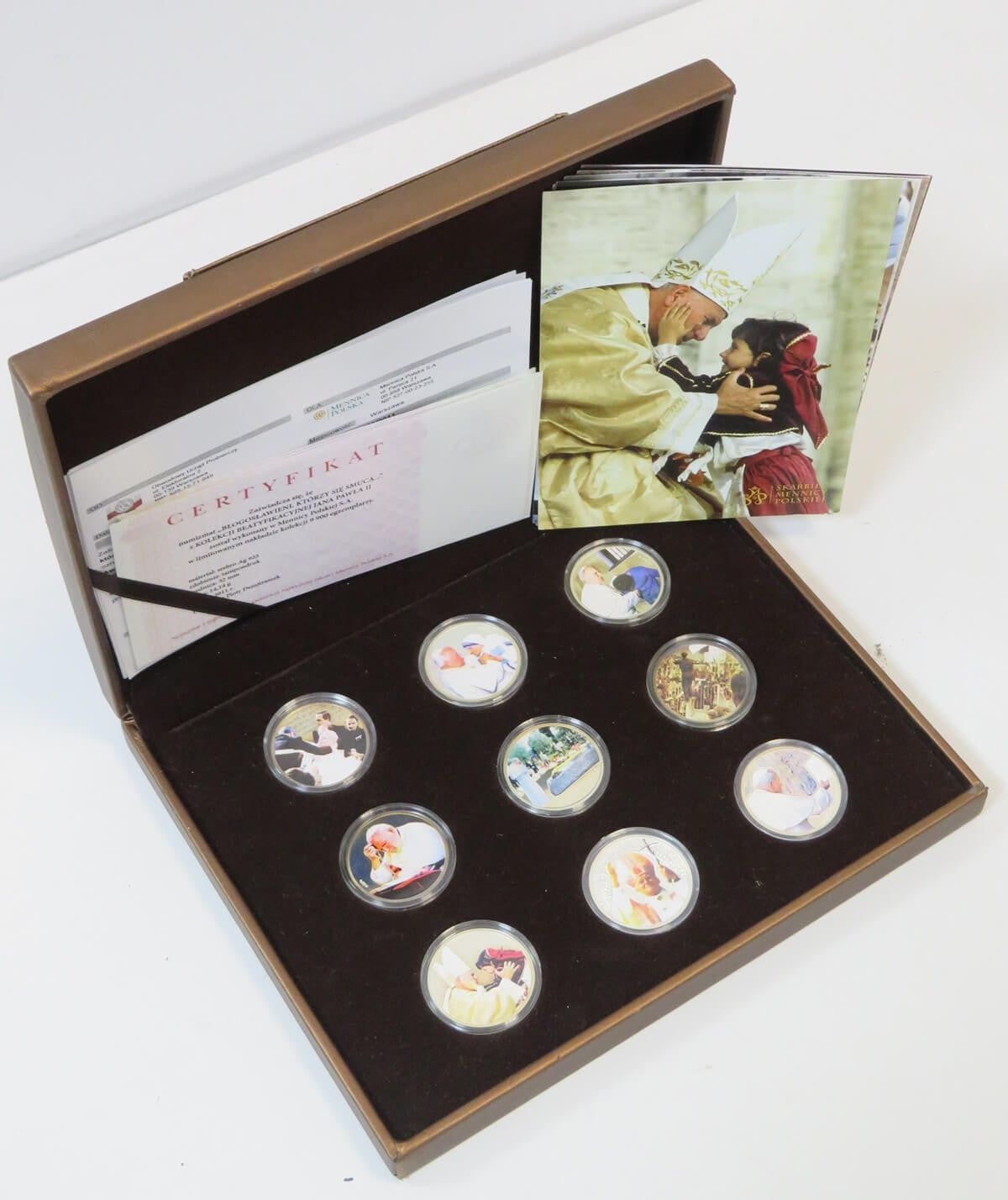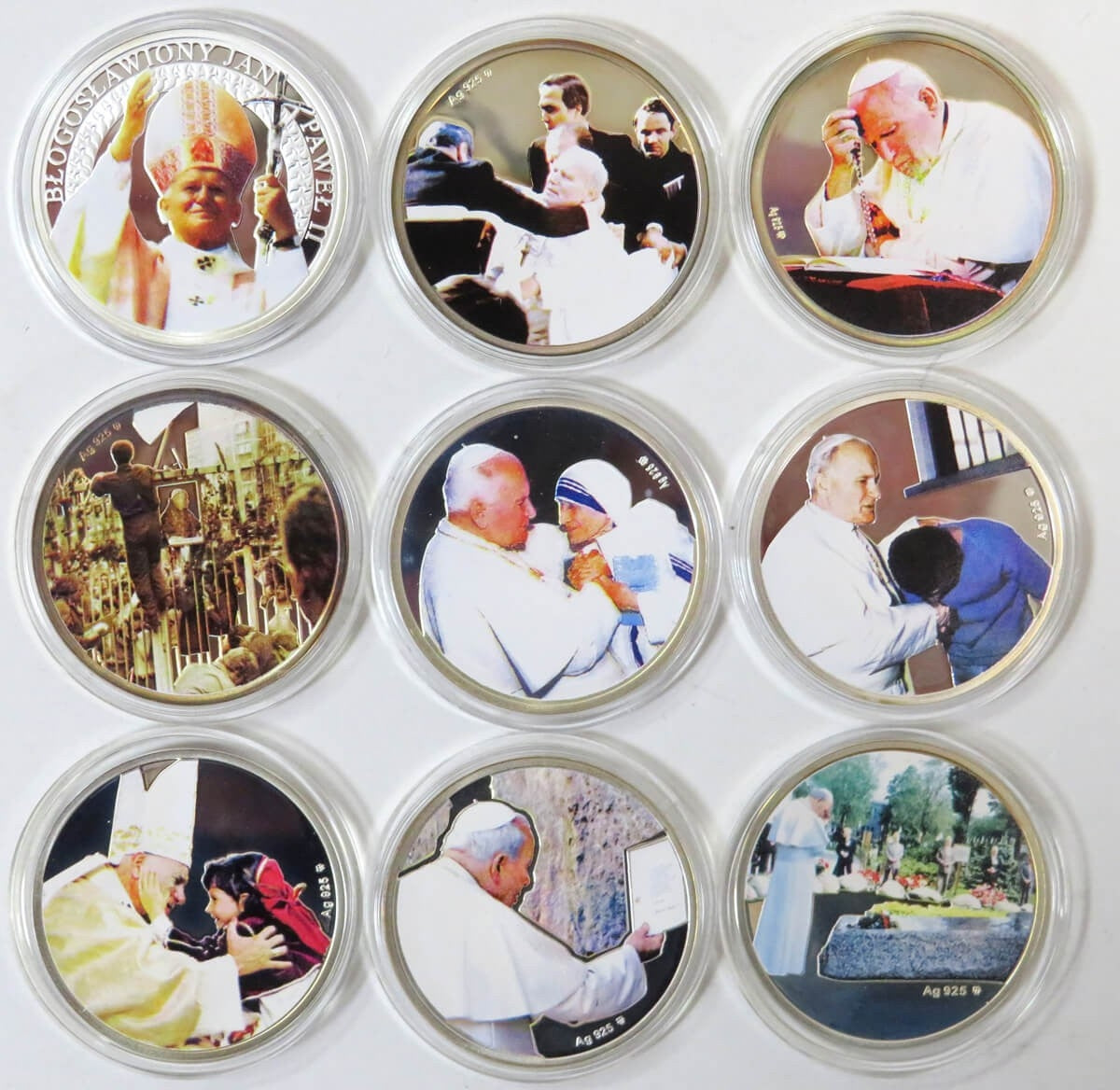 Jan Paweł II beatyfikacja zestaw 9 szt Srebro Ag925 + etui + certyfikaty