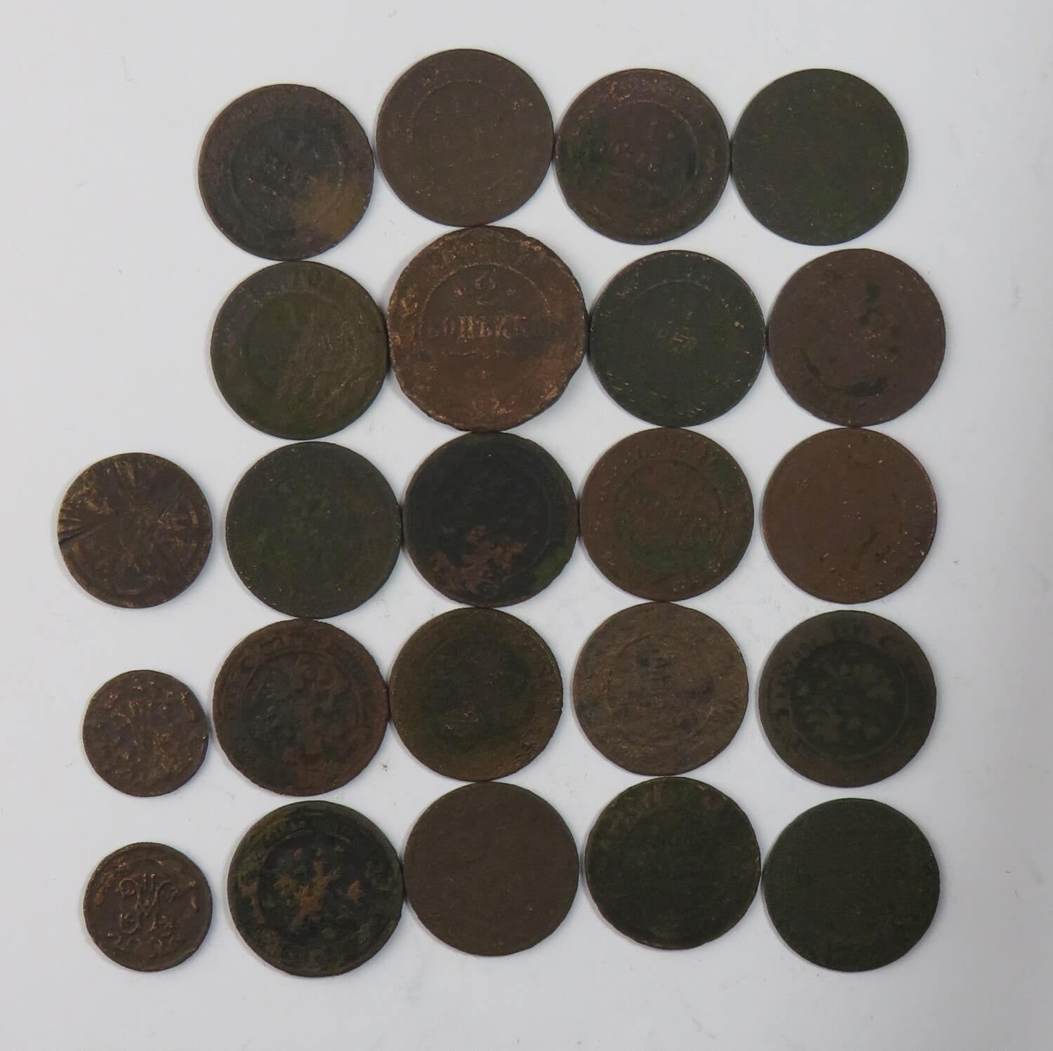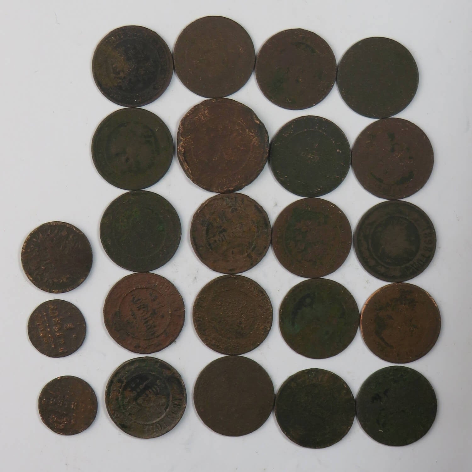 Lot 23 szt. stare miedziane monety do identyfikacji