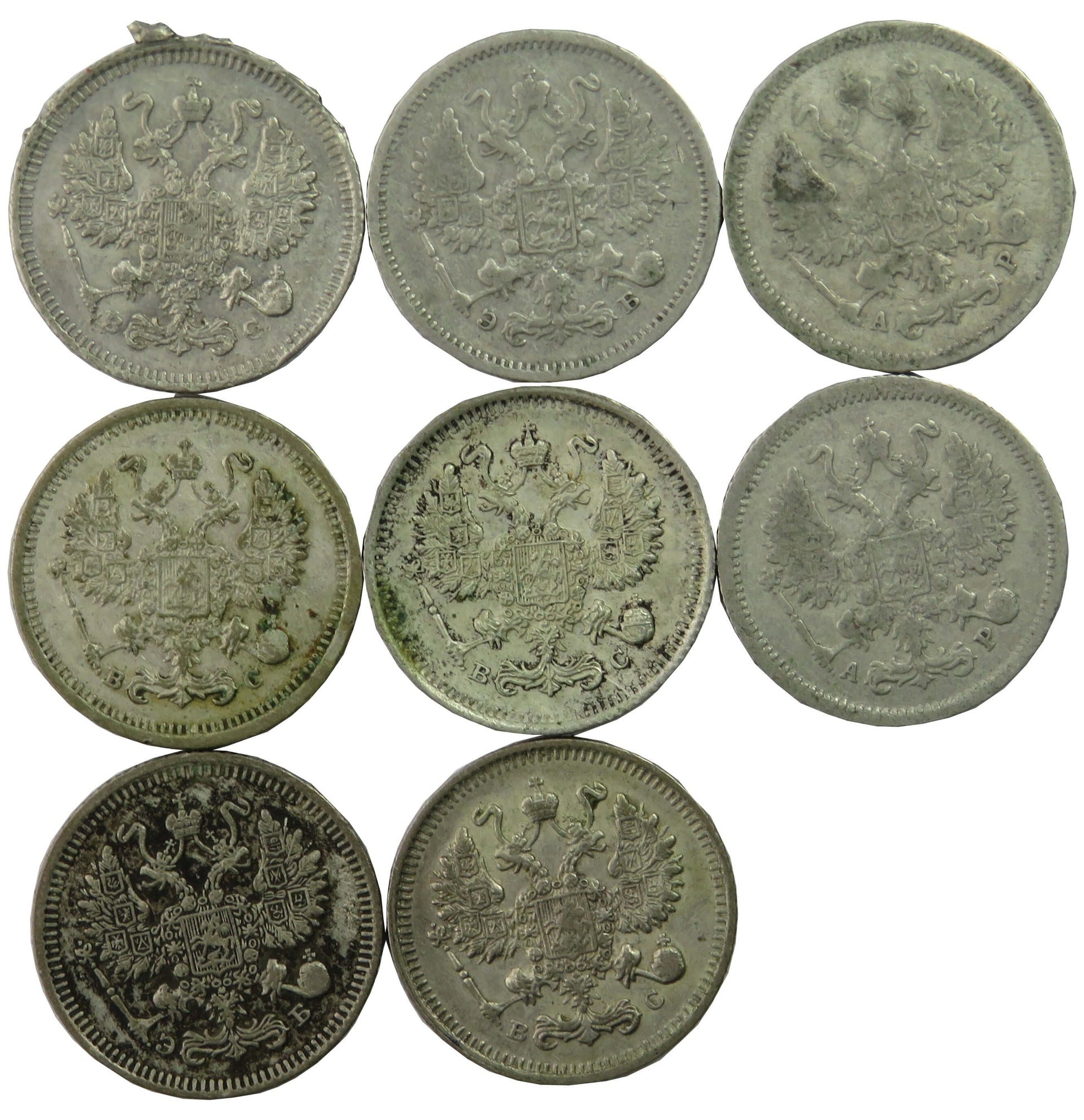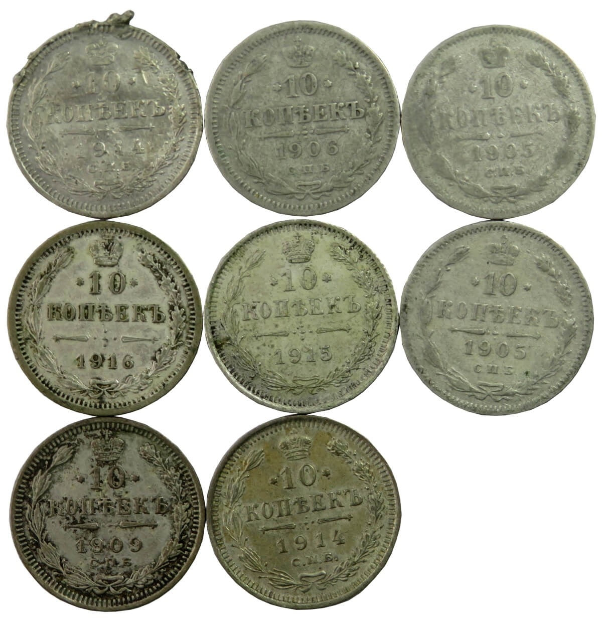 Lot, Rosja carska, zestaw 8 x 10 kopiejek, srebro