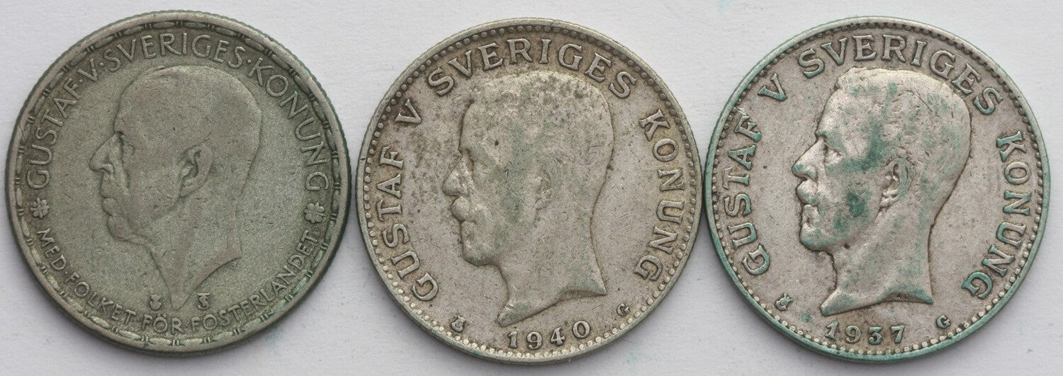Lot, Szwecja 3 x 1 korona, 1937,1940, 1946, srebro