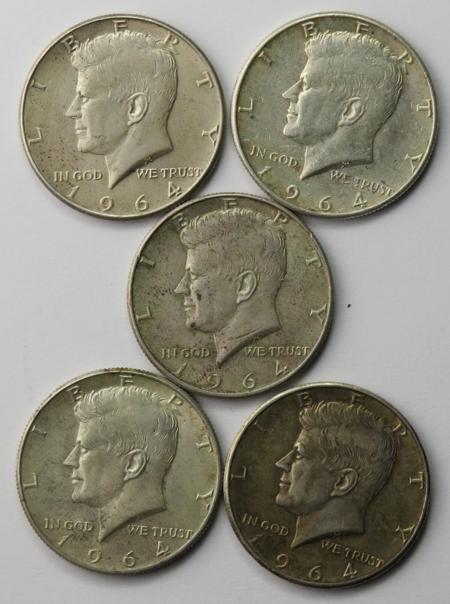 Lot: USA 5 x 1/2 dolara half dollar Kennedy 1964, stan ~2