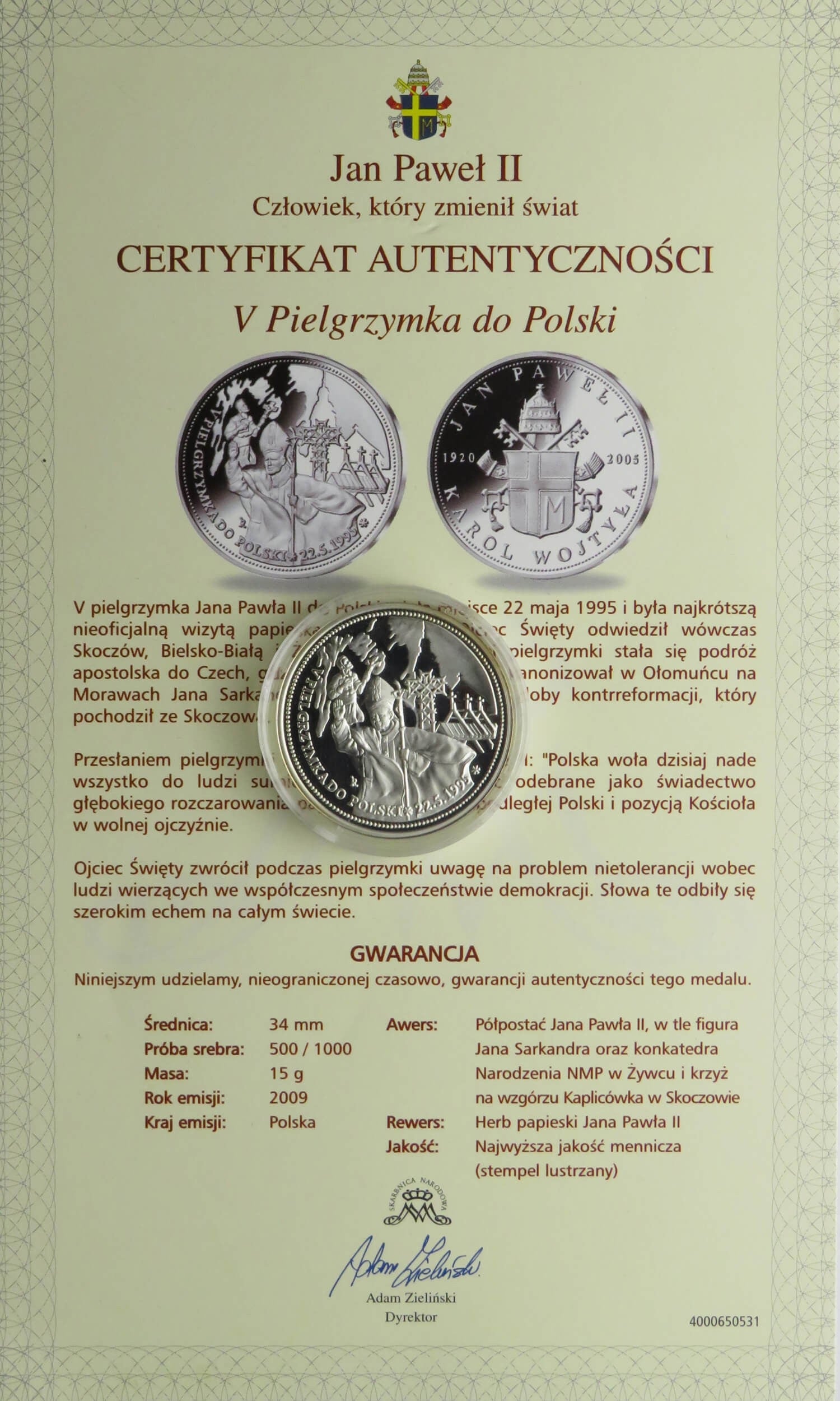 Medal, Jan Paweł II V pielgrzymka do Polski, srebro, certyfikat