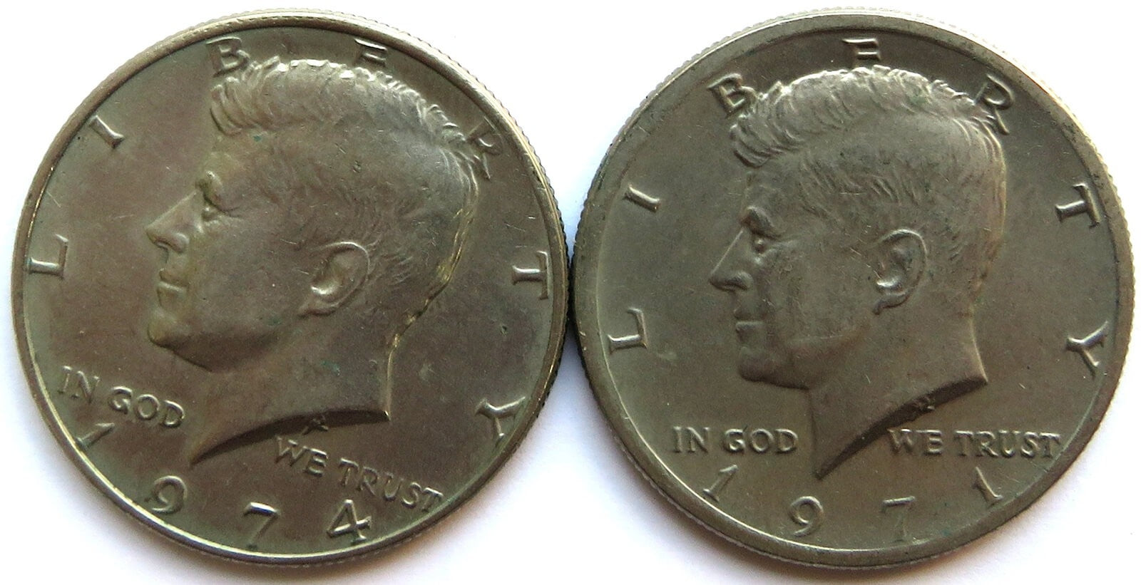 USA 2 x 1/2 half dollar Kennedy 1971, 1974