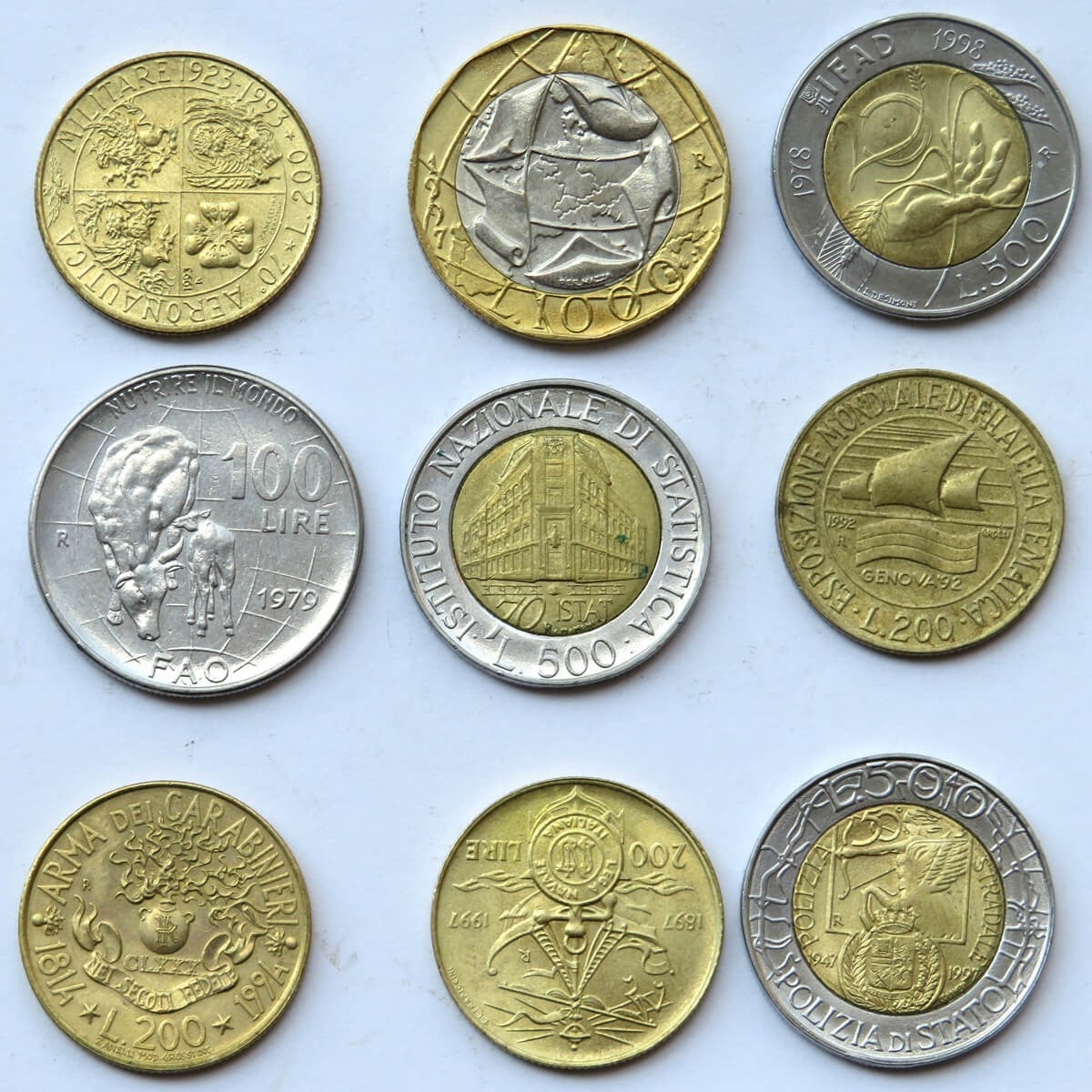 Włochy, monety okolicznościowe, 9 sztuk, 1979-1998 r.