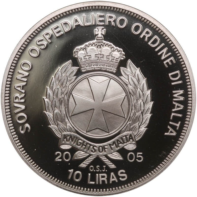 Zakon Maltański 10 lir, 10 liras 2005 Papież Jan Paweł II, nakład tylko 1000 szt.