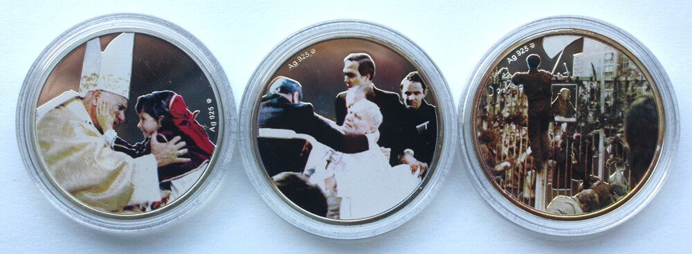 Zestaw 3 medali z Janem Pawełem II srebro Ag 925 + tampondruk