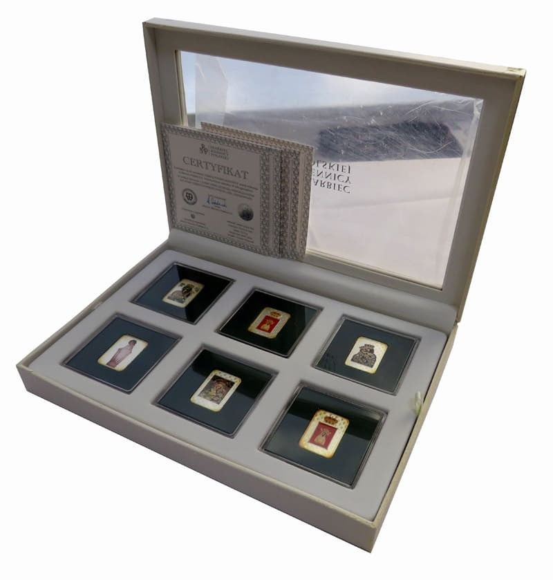 Zestaw 6 srebrnych medali Polskie Madonny w etui - certyfikaty